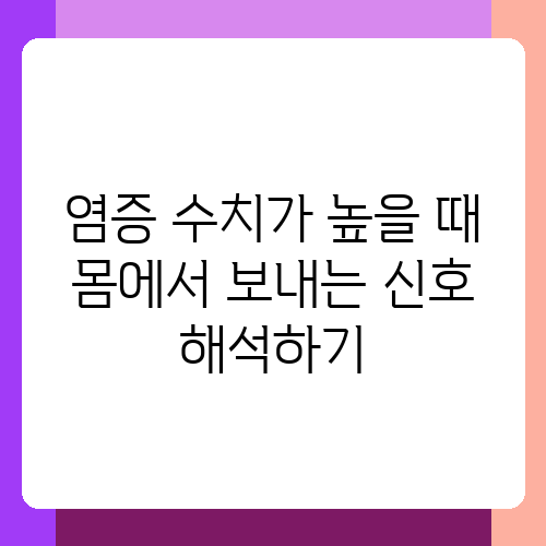 몸이 불편한 신호를 보낼 때, 우리는 어떻게 반응해야 할까요? 특히 염증 수치가 높다는 결과를 받으면 걱정부터 앞서게 되죠. 하지만 염증 수치 상승은 단순히 숫자 이상의 의미를 지닙니다. 몸이 보내는 여러 가지 신호들을 제대로 이해하고 대처하는 것이 중요해요. 이 글에서는 염증 수치가 높을 때 나타나는 다양한 몸의 신호들을 알아보고, 건강을 지키는 방법을 함께 생각해 보도록 하겠습니다.