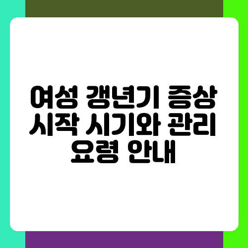 - 여성 갱년기 증상 시작 시기와 관리 요령 안내 목차