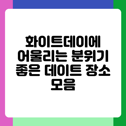 설렘 가득한 화이트데이, 어디로 데이트 갈까 고민이시라면 주목해주세요! 달콤한 캔디보다 더 달콤한 추억을 만들 수 있는 분위기 좋은 데이트 장소들을 엄선하여 소개합니다. 잊지 못할 화이트데이를 만들어 줄 특별한 장소들을 함께 만나볼까요? 사랑하는 사람과 함께 행복한 시간을 보내시길 바라며, 여러분의 로맨틱한 데이트를 응원합니다.
