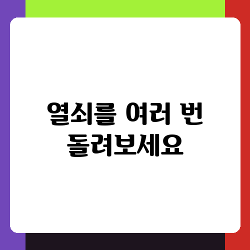 열쇠가 잘 안 돌아간다면 여러 번 시도해 보세요. 열쇠를 넣고 천천히 부드럽게 돌려보고, 여전히 안 된다면 다른 각도로 시도해 보세요. 열쇠가 닳았거나, 문의 상태가 좋지 않을 경우에는 힘을 주어 돌리기보다 부드러운 움직임으로 여러 번 시도하는 것이 더 효과적입니다. 열쇠를 억지로 돌리면 열쇠가 부러지거나 문의 손잡이가 고장날 위험이 있으니, 조심스럽게 여러 번 시도하는 것이 중요합니다. 만약 여러 번 시도해도 열쇠가 돌아가지 않는다면, 다른 해결 방법을 찾아보는 것이 좋겠죠.