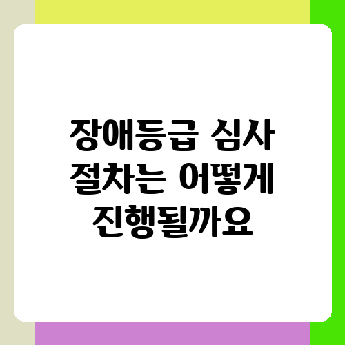 장애등급 심사는 의사의 소견서와 여러 가지 자료를 바탕으로 진행됩니다. 신청서 접수 후, 관할 기관에서 서류 심사를 진행하고, 필요에 따라 장애 판정 의사의 방문 진찰이 이루어질 수 있습니다. 방문 진찰에서는 신체 기능 및 일상생활 수행 능력을 직접 평가합니다. 이 과정은 조금 시간이 걸릴 수 있습니다. 따라서, 신청 전에 필요한 서류를 충분히 준비하고 정확하게 제출하는 것이 심사 기간을 단축하는데 도움이 됩니다. 또한, 기관에 수시로 문의하여 심사 진행 상황을 확인하는 것도 좋습니다. 심사 결과는 신청 후 약 2~3개월 후에 통보됩니다. 결과에 따라 장애등급이 결정되고, 장애 수당 등의 지원을 받을 수 있습니다. 심사 기간 동안 불안감을 느끼실 수 있지만, 담당자와 소통하며 궁금한 점을 해결해 나간다면 어려움을 극복할 수 있을 거예요.