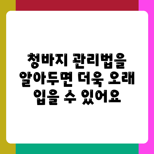 아무리 좋은 청바지를 사더라도 관리를 잘못하면 금방 망가질 수 있습니다. 청바지를 오래도록 예쁘게 입고 싶다면 세탁 방법에 신경 쓰는 것이 좋습니다. 되도록이면 손세탁하거나 드라이 크리닝하는 것이 좋고, 세탁기 사용 시에는 세탁망에 넣어 돌리는 것이 좋습니다. 그리고 건조기 사용은 피하는 것이 좋습니다. 건조기 열 때문에 청바지가 쉽게 늘어나거나 변형될 수 있거든요. 햇빛에 직접 건조하는 것도 좋지 않습니다. 통풍이 잘 되는 그늘에서 말리는 것이 좋습니다. 그리고 청바지에 묻은 얼룩은 바로바로 제거해주는 것이 중요해요. 얼룩이 오래 방치될수록 제거하기 어려워지니까요. 이러한 몇 가지 관리 팁만 알아도 청바지를 오랫동안 새것처럼 입을 수 있답니다.