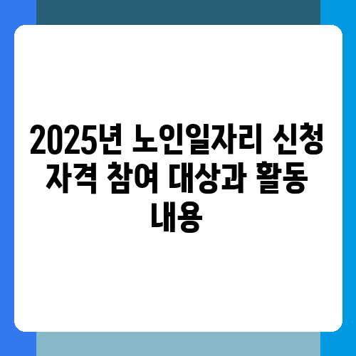 - 2025년 노인일자리 신청 자격 참여 대상과 활동 내용 목차