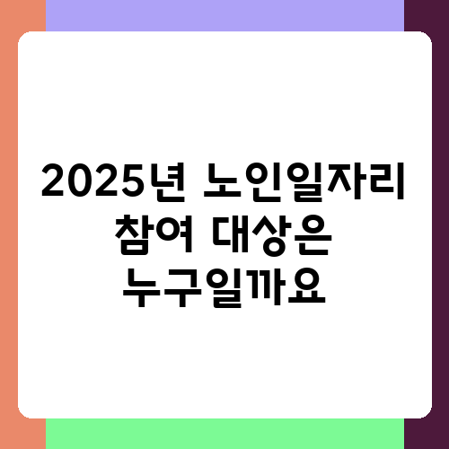 2025년 노인일자리 참여 대상은 누구일까요