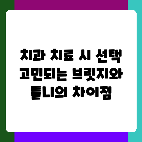 치아가 상실되어 고민이시라면, 브릿지와 틀니 중 어떤 치료를 선택해야 할지 망설이실 거예요. 두 치료법 모두 빠진 치아를 대체하는 방법이지만, 재료, 수명, 관리 방법, 비용 등 여러 면에서 차이가 있답니다. 이 글에서는 브릿지와 틀니의 차이점을 자세히 알아보고, 여러분의 상황에 맞는 최적의 치료법을 선택하는 데 도움을 드리고자 합니다. 어떤 치료가 더 나은 선택인지 함께 고민해 보아요.