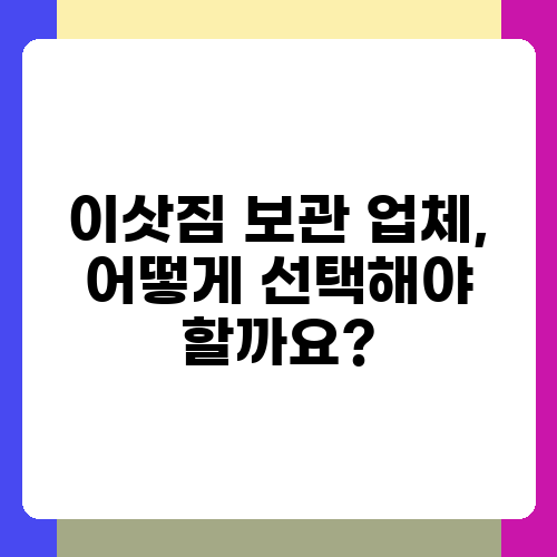 이삿짐 보관 업체, 어떻게 선택해야 할까요?