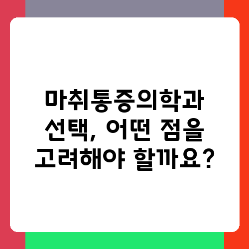 마취통증의학과 선택, 어떤 점을 고려해야 할까요?