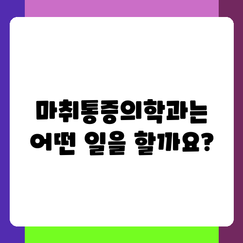 갑작스러운 통증으로 힘든 시간을 보내고 계신가요? 혹은 만성적인 통증 때문에 일상생활에 어려움을 겪고 있나요? 이럴 때 도움을 받을 수 있는 곳이 바로 마취통증의학과입니다. 마취통증의학과는 단순히 수술 전후의 마취만 담당하는 곳이 아니라는 사실, 알고 계셨나요? 이 글에서는 마취통증의학과에서 어떤 진료를 하고, 어떤 질환에 도움이 되는지 자세히 알아보도록 하겠습니다. 함께 마취통증의학과의 세계를 탐험해 봐요!