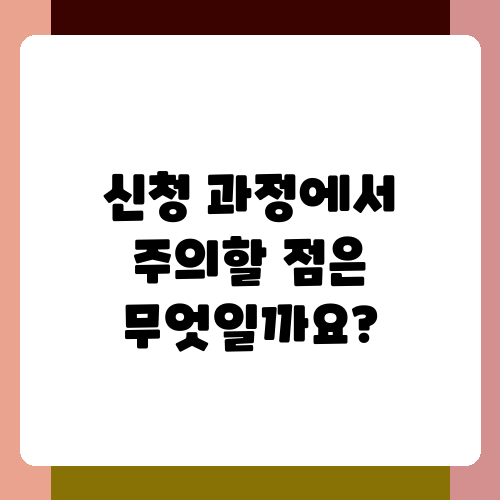 신청 과정에서 가장 중요한 것은 정확한 정보 제공입니다. 허위 정보를 제공할 경우, 수급 자격이 취소될 수 있으므로, 모든 정보를 정확하게 기재하고 제출해야 합니다. 또한, 신청 과정에 필요한 서류를 미리 준비하고, 담당 공무원과의 소통을 통해 어려움을 해결하는 것이 중요합니다. 그리고, 신청 전에 미리 자격 요건을 확인하고, 본인의 상황에 맞는 지원 제도를 선택하는 것이 효율적인 신청을 위한 중요한 단계입니다. 잘못된 정보로 인해 불이익을 받는 일이 없도록, 모든 절차를 꼼꼼하게 확인하고 진행하세요. 필요하다면 사회복지기관이나 전문가의 도움을 받는 것도 좋은 방법입니다.