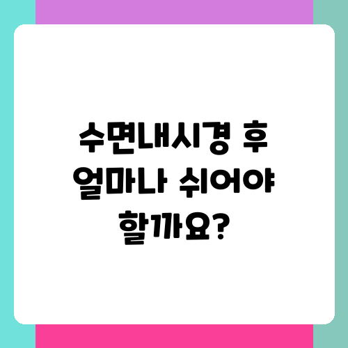 보통 수면내시경 후에는 몇 시간 정도 휴식을 취하는 것이 좋다고 해요. 마취에서 완전히 깨어나고, 몸 상태가 안정될 때까지 말이죠. 병원에서도 검사 후 1~2시간 정도는 병실에서 관찰하는 경우가 많아요. 저는 병원에서 2시간 정도 머물렀는데, 덕분에 몸 상태를 체크하고, 궁금한 점을 여쭤볼 수 있어서 좋았어요. 집에 돌아가서도 무리하지 않고 충분한 휴식을 취하는 것이 중요해요. 잠을 충분히 자고, 몸에 무리가 가는 활동은 피하도록 하세요. 특히 운전은 절대 금물이에요! 마취 때문에 반응 속도가 늦어질 수 있기 때문에 안전을 위해서라도 피해야 합니다. 저는 검사 후 하루 종일 푹 쉬었어요. 덕분에 다음 날에는 컨디션이 많이 좋아졌답니다.